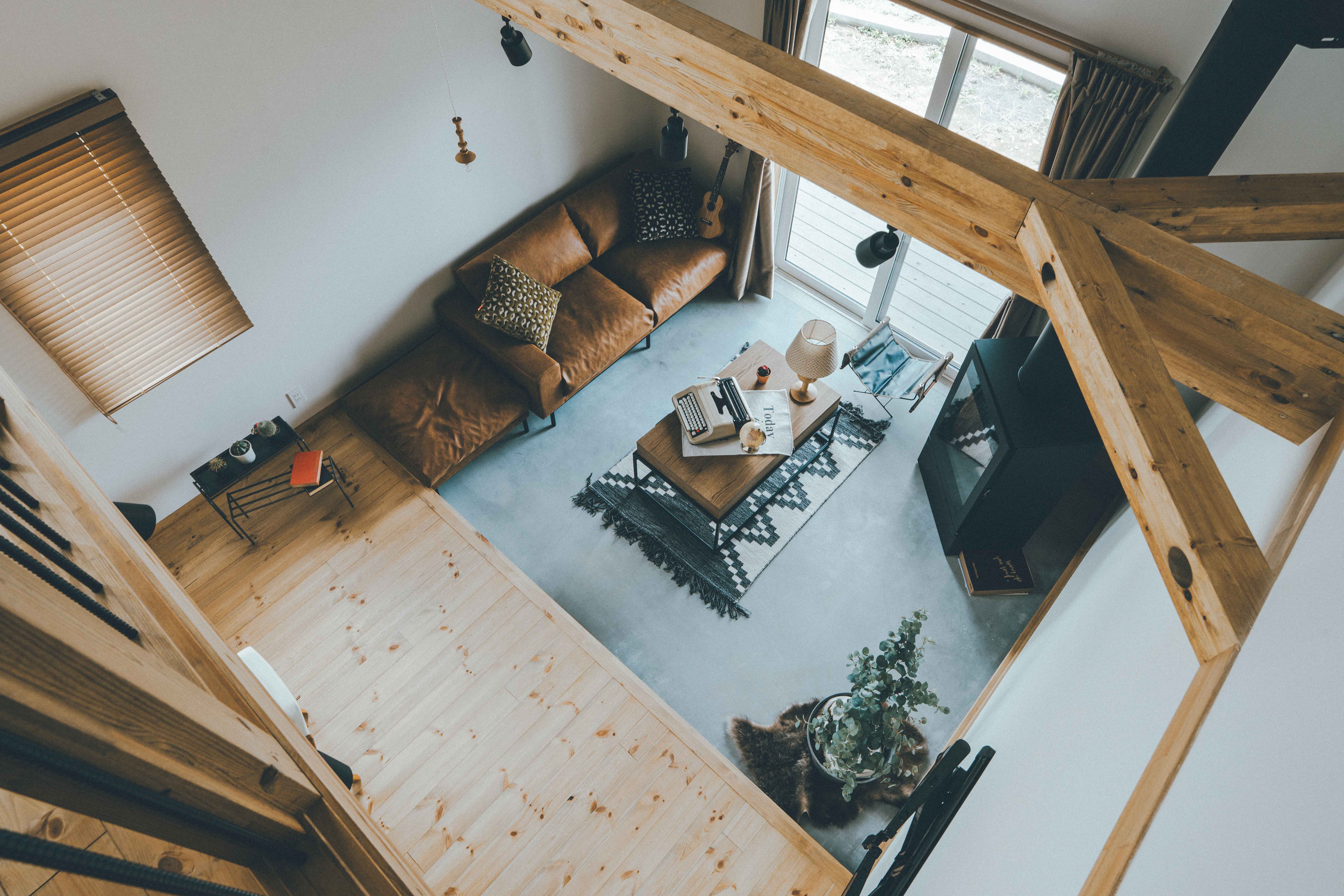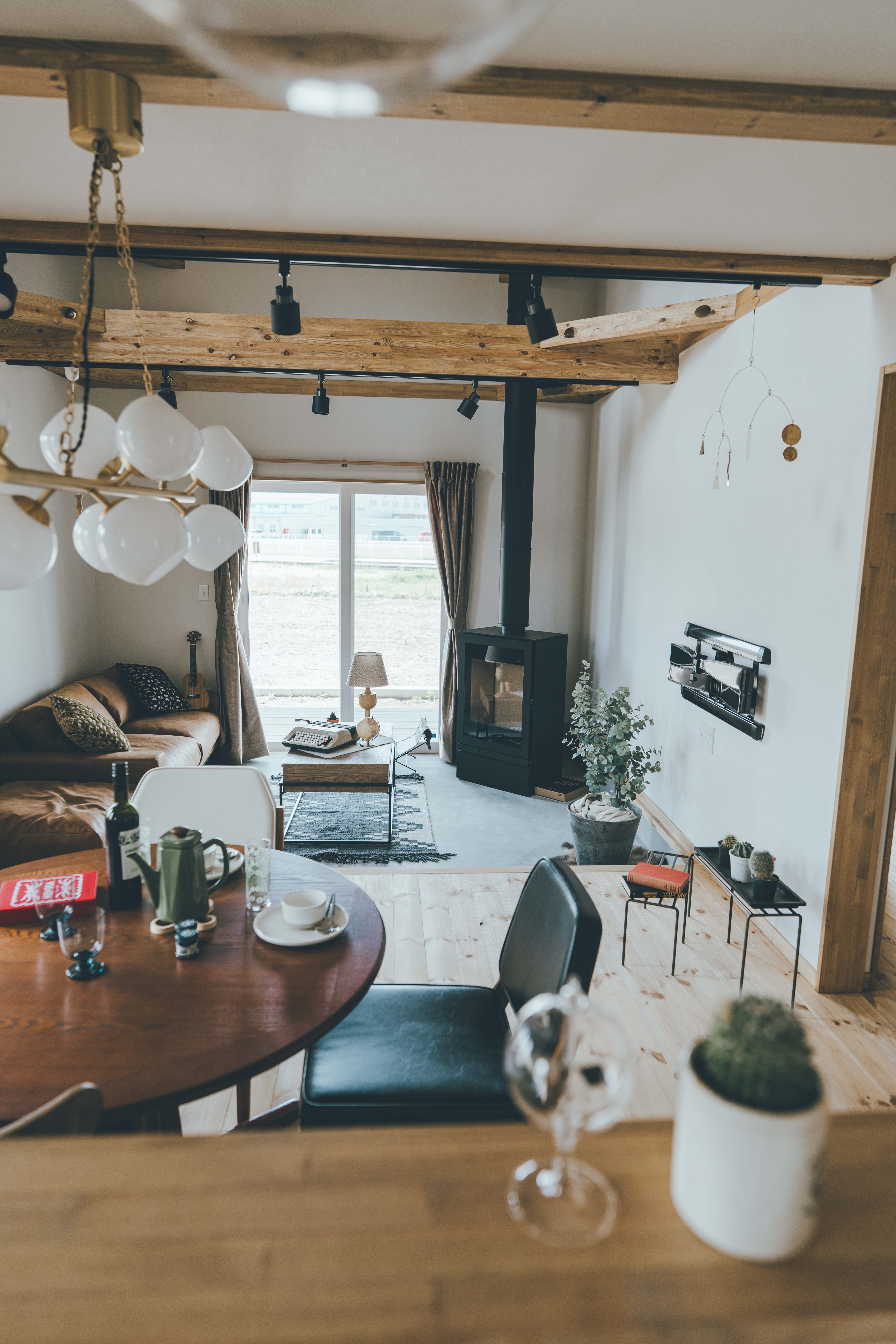 薪ストーブと吹き抜けリビングがあるインダストリアルテイストな家 BinO LOAFER