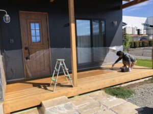 LOAFERにお住いのオーナー様と一緒に、ウッドデッキの塗装をしました。